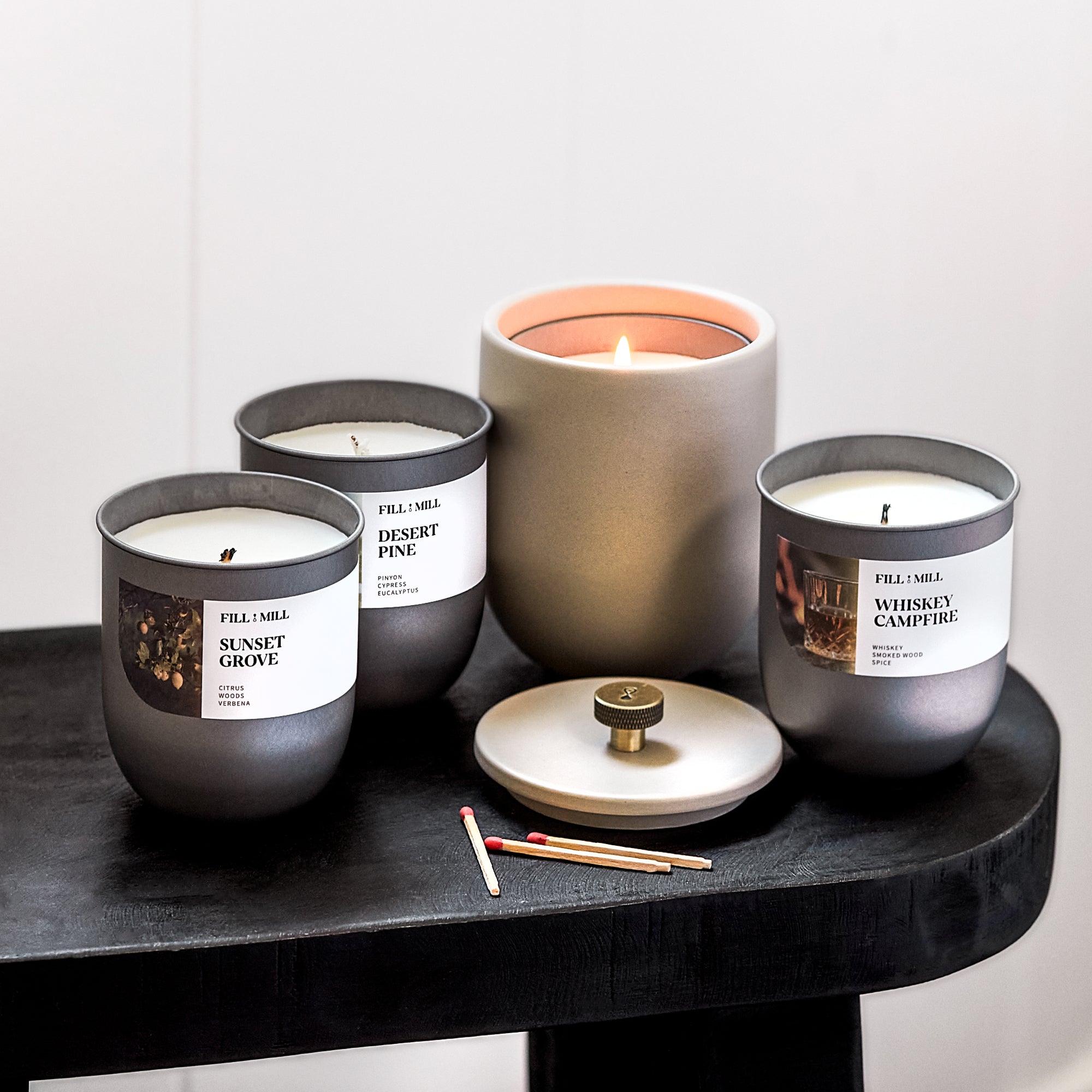 Premium CandlesFill Mill’s candles feature a premium soy wax blend, cotton wick, and are certified non-toxic.